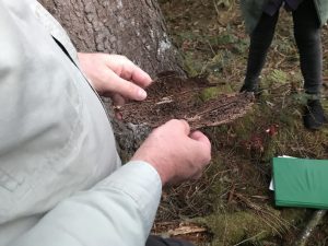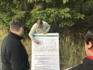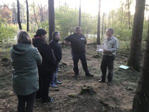 Doch bevor wir in die täglichen Herausforderungen eingestiegen sind, hat Otmar uns auf eine waldgeschichtliche Zeitreise mitgenommen. Wie sah es mit dem Wald vor 200 bis 300 Jahren im Westerwald aus, wo verliefen die Waldgrenzen, wie hat sich der gesamte Wald über die Jahrhunderte entwickelt und welche Bäume schaffen es bei uns und welche eher nicht – alles Geschichten, die wir erzählt bekommen haben. Eine wirklich spannende Reise. Dabei haben wir uns an drei verschiedenen Punkten die Dinge vor Ort angeschaut, um einen echten Eindruck zu gewinnen.