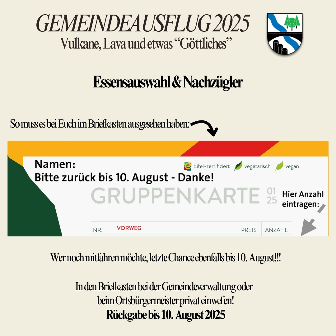 Gemeindeausflug 2025: Essensauswahl und Nachzügler