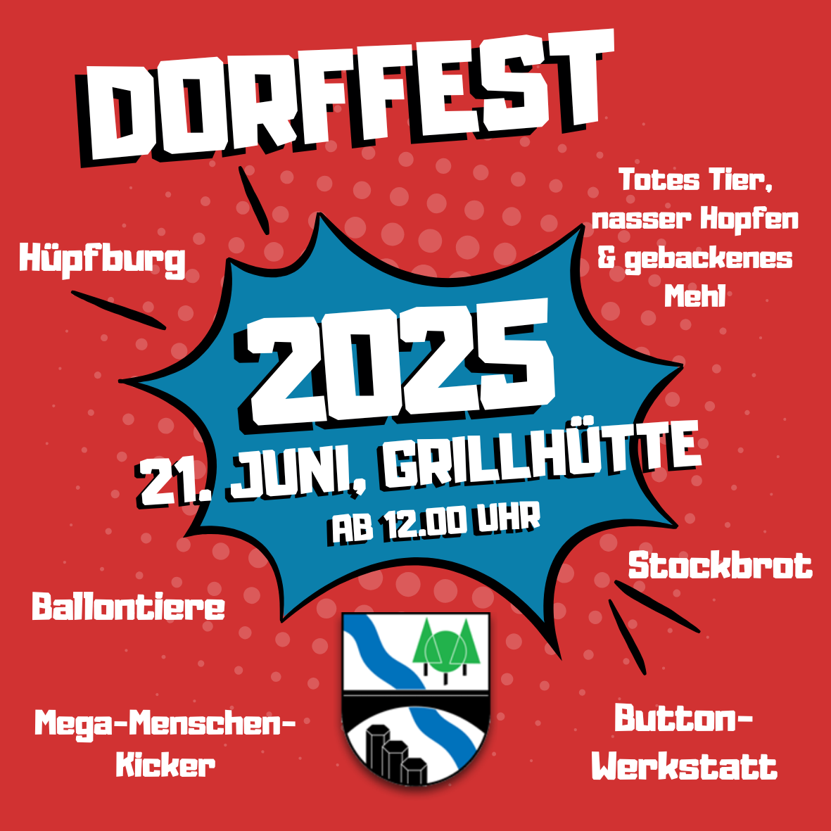 Wer es immer noch nicht mitbekommen hat, letzte Chance, diesen Samstag geht es los: Dorffest 2025! Kurzübersicht: Start ab 12.00 Uhr an der Grillhütte mit Grillgut und „Frischgezapftem“ 14.00 – 16.00 Uhr Ballontiere knoten, Stockbrot mit dem CVJM ab 15.00 Uhr zusätzlich Kaffee und Kuchen Durchgehend stehen Buttonmaschine und Hüpfburg zur Verfügung und man darf […]