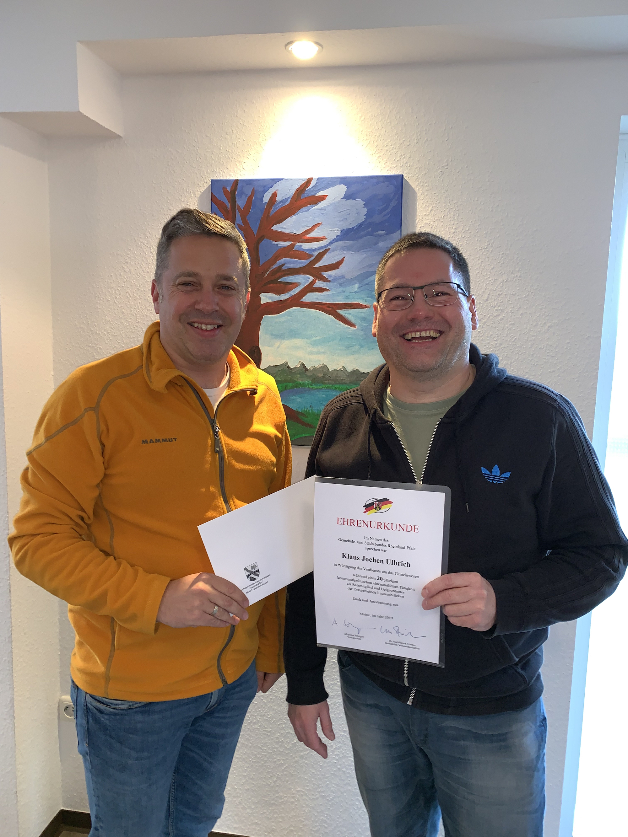 Mit der auslaufenden Periode dieses Gemeinderates hat Klaus Jochen Ulbrich 20 Jahre auf dem Buckel. So lange ist er bereits Mitglied im Gemeinderat, die letzten vier Jahre davon auch als Erster Beigeordneter der Ortsgemeinde. Grund genug für den Gemeinde- und Städtebund Rheinland-Pfalz, Klaus Jochen mit einer Ehrenurkunde zu bedenken und sein kommunalpolitisches Engagement zu ehren. […]