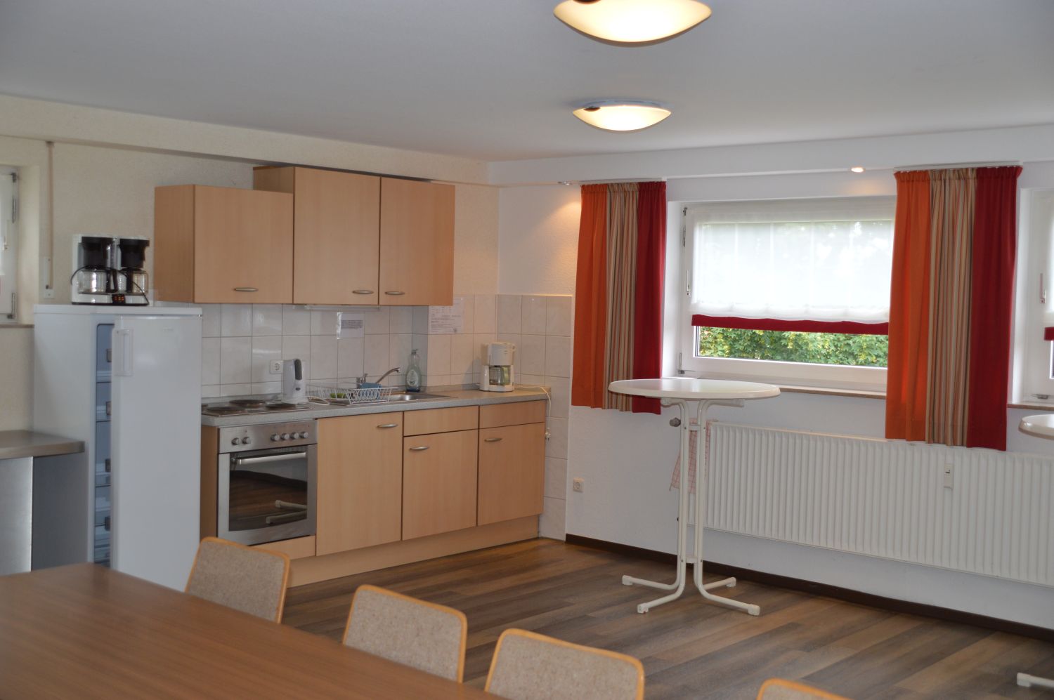 Eine moderne Küche rundet das Angebot ab und ermöglicht eine vielseitige Nutzung. Im Untergeschoss des DGH steht zusätzlich der lichtdurchflutete „Kellerraum“ zur Verfügung, der ebenfalls über eine kleine Küche sowie separate Sanitärräume verfügt. Wer eine Veranstaltung in kleinerer Runde organisieren möchte, ist hier bestens aufgehoben.