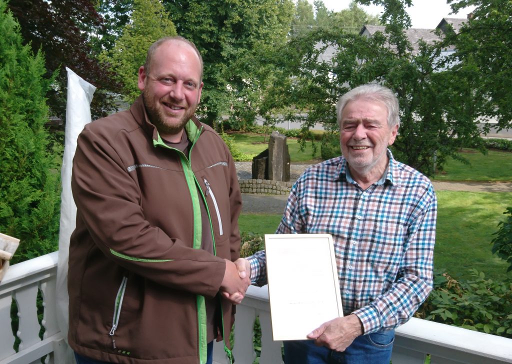 Fredi Brenner, der an diesem Tag nicht am Weiher sein konnte, bekam seine Urkunde von Florian Häbel privat überreicht. Auch ihm dankte er für die lange Mitgliedschaft in denen er auch bis 2014 dem Vereinsvorstand angehörte.