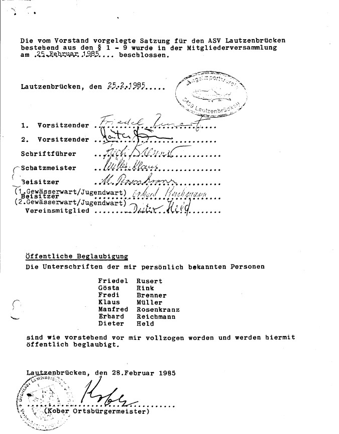 Der ASV Lautzenbrücken konnte in diesem Jahr zwei Gründungsmitglieder, des im Jahr 1985 gegründeten Vereins, zu Ehrenmitgliedern ernennen. Beim jährlich stattfindenden Freundschaftsangeln überreichte der 1.Vorsitzende des Vereins, Florian Häbel, Mischa Pogacar die Ernennungsurkunde und dankte ihm für die lange Mitgliedschaft im Verein.