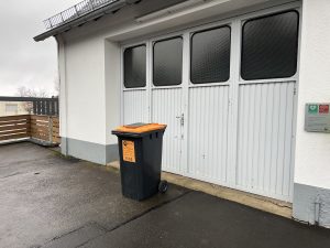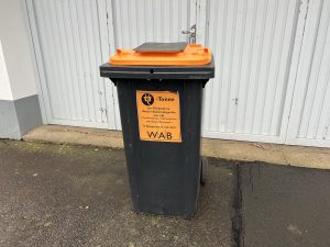 Die e-Tonne steht durchaus auch schon einmal früher dort und kann auch einmal in die Mittagszeit hinein dort stehen – sprich: Es ist nach vorne und hinten etwas flexibel. Das kann sich von Woche zu Woche ändern. Wer ganz sicher gehen will, kommt von 10 bis 11 Uhr.