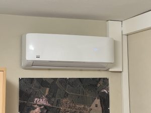 Jetzt haben wir eine so genannte Luft-Luft-Wärmpumpe mit zwei Anschlüssen installieren lassen und können damit auch beide Nachtspeicheröfen entsorgen, abgeklemmt sind sie schon. Der Stromverbrauch dürfte durch diese Anschaffung deutlich gesenkt werden können. Außerdem sind wir nun in der Lage viel flexibler und punktgenauer zu heizen, weil die Einstell- und Regulierungsmöglichkeiten dieser neuen Wärmepumpe viel detaillierter und umfangreicher sind als die der alten Heizsysteme. Außerdem mussten keine neuen Heizköper oder Heizflächen eingebaut werden, die es ja im gesamten Gebäude nicht gibt. Das reduziert die Investitionskosten dramatisch.