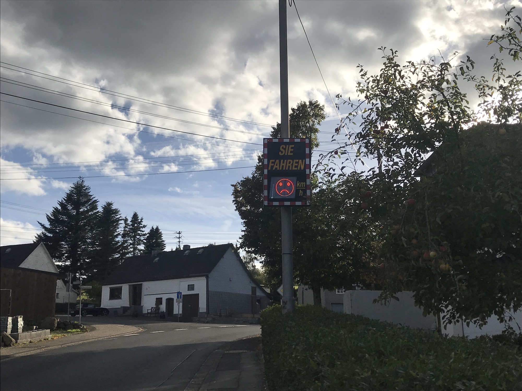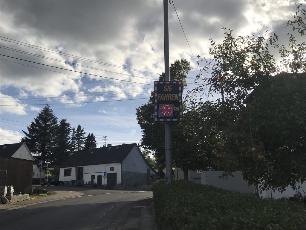 Da die Möglichkeiten sehr begrenzt sind, wurden jetzt an den beiden Ortseingängen zu uns ins Dorf aus Kirburg bzw. aus Nisterberg kommend zwei feste Geschwindigkeitsdisplay installiert. Es wird die Geschwindigkeit angezeigt, bei Überschreitung rot und bei angemessener Geschwindigkeit grün mit einem Umschalten auf einen Smiley bei richtiger Geschwindigkeit. Jetzt kann man darüber streiten, wie effektiv die Displays sind. Und selbst wenn sie nur wenige Autofahrer erreichen, was abzuwarten bleibt, sind das vielleicht die entscheidenden. Lieber überhaupt etwas getan als gar nichts getan zu haben. Andere Gemeinden haben mit diesem System übrigens ganz gute Erfahrungen gemacht – hoffentlich dann auch bei uns!