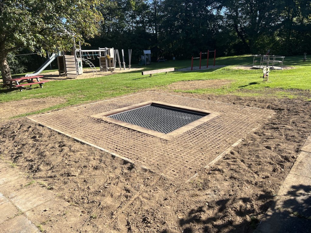 Trampolin ist cool. Aber wer schon einmal zu aktiv hüpft, der könnte auch mal daneben landen. Na gut, ein bisschen Abhilfe haben wir für diesen Fall jetzt geschaffen. Mit den professionellen Fallschutzmatten haben wir jetzt um das Trampolin herum einen kinderspielplatzkonformen Fallschutz, der den neuesten Anforderungen entspricht. Wir hoffen natürlich, dass alle immer wieder im Netz landen, aber wenn nicht, dann hoffentlich einen weicheren Aufprall. Gut Hüpf!