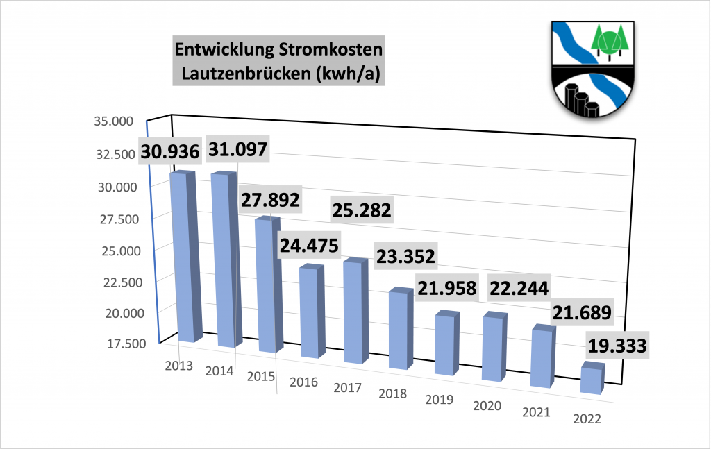 Die Erfolge der Stromkosteneinsparungen gehen weiter, das ist ein echt toller Erfolg. Wir haben es mittlerweile geschafft, dauerhaft über 10.000 kWh weniger Strom zu verbrauchen, wenn wir die Jahre 2013 und 2014 als Ausgangslage nehmen. Darin sind alle Immobilien der Ortsgemeinde (DGH, Gemeindeverwaltung, MZH, Grillhütte, Friedhofshalle und Bauhof) sowie die komplette Straßenbeleuchtung inbegriffen.
