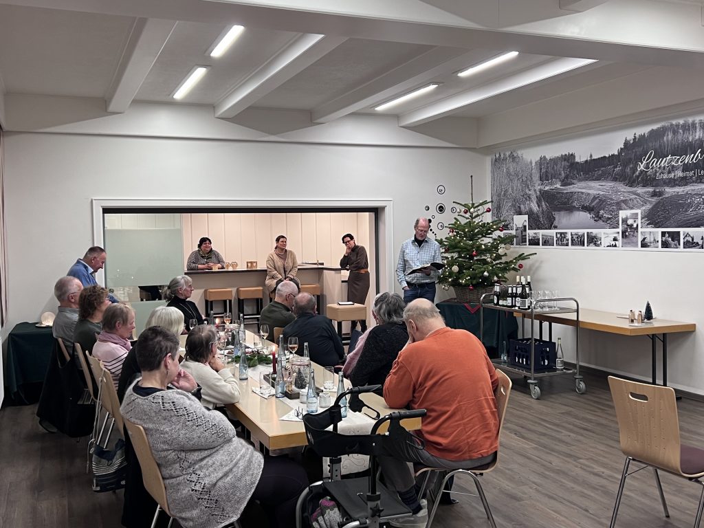 Zurück ins jetzt: Um es gleich vorwegzunehmen, es war ein superschöner Nachmittag. Der VG-Bürgermeister konnte den Termin leider nicht wahrnehmen, was sehr schade war, weil es sein letzter Besuch auf der Lautzenbrücker „Ü65-Weihnachten“ gewesen wäre, aber wie das mit dem Terminkalender eben immer so ist – ihm ist auf jeden Fall wieder das berühmt-berüchtigte Lautzenbrücker Küchenbuffet entgangen. Pfarrer Rüder Stein hatte es aber geschafft und war wie immer gern gesehener Gast, der uns mit bedächtigen Worten in den Nachmittag führte.